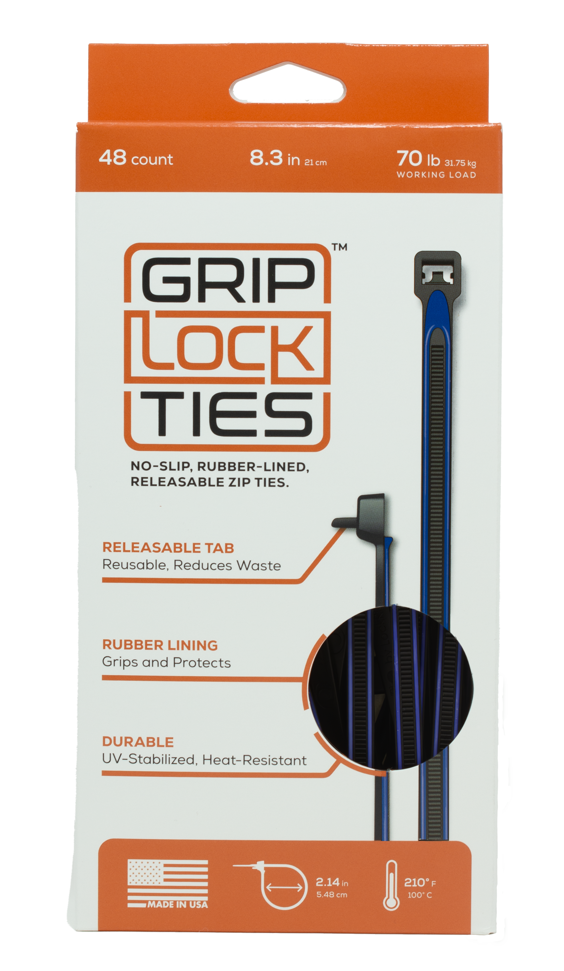 GripLockTies® rubber-lined, releasable ties offer superior grip, vibration dampening, and non-slip performance.