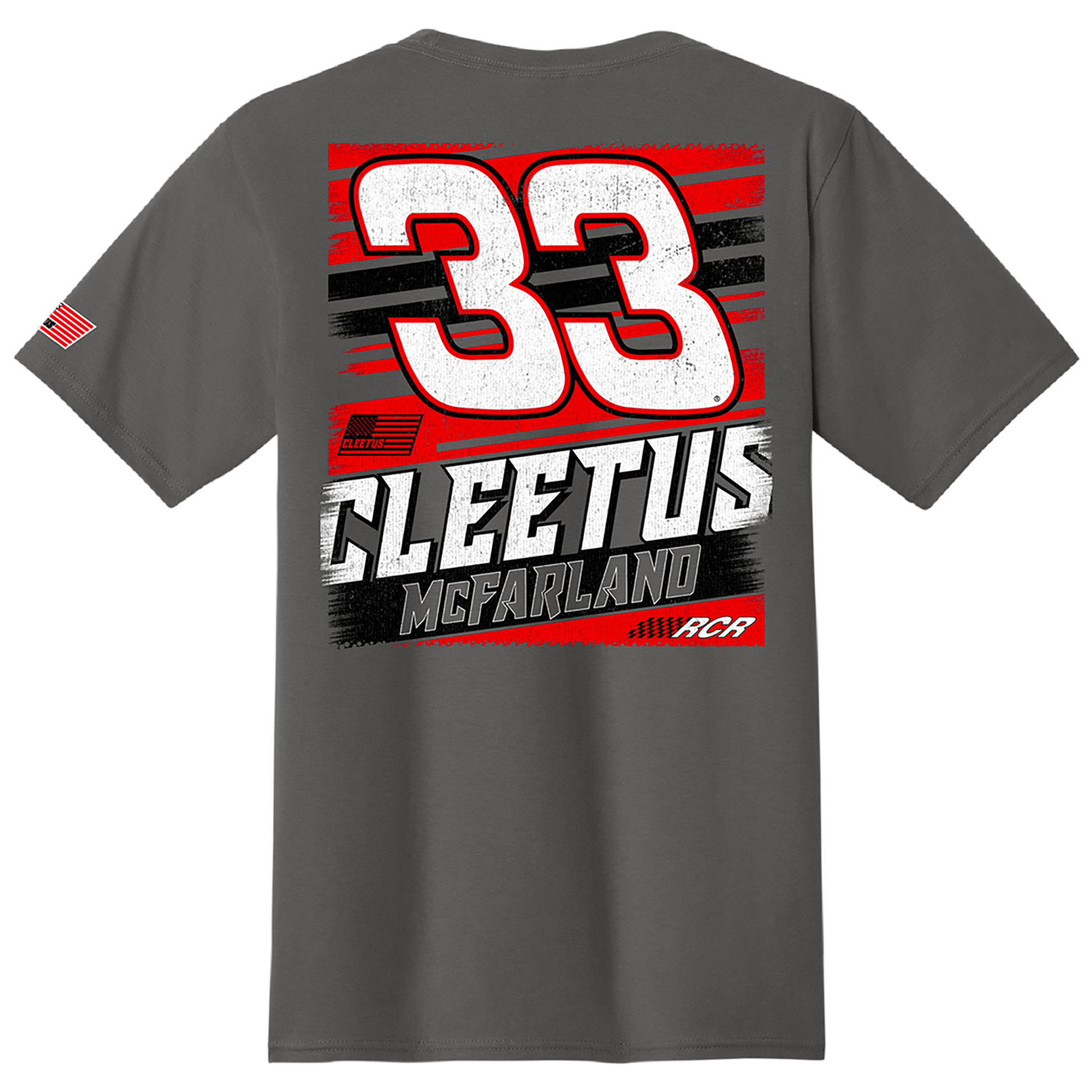 Featuring a racing-inspired design, this shirt highlights the iconic 33 on the back with red and black streak graphics that capture the speed and energy of the track. The front features a clean Cleetus McFarland #33 graphic with NASCAR styling, making it perfect for race day or everyday wear.